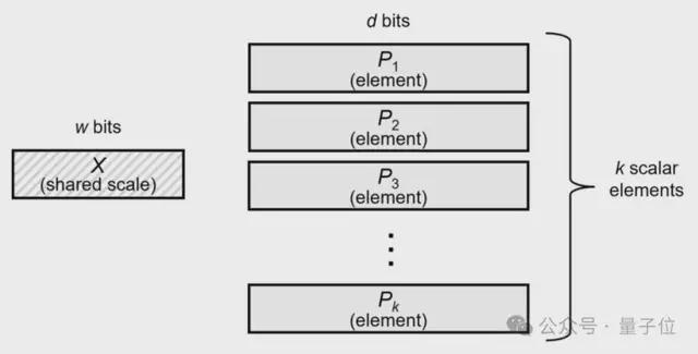 MXFP8的核心思想是先把张量切成固定长度的“块”,然后为每个块单独指定一个2的整数次幂作为“缩放因子”,把块内所有数一起除以这个系数后再写成FP8。